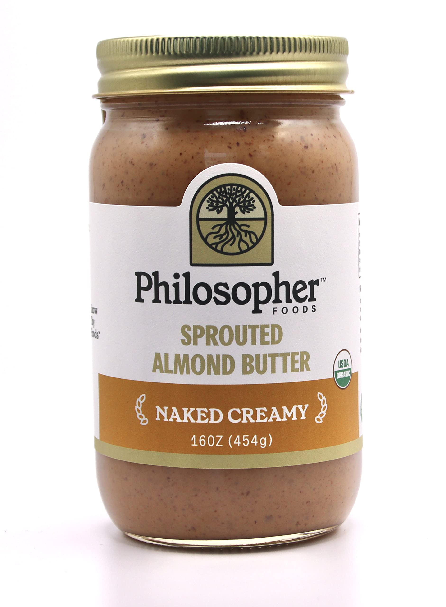 Amazon Com Organic Sprouted Almond Butter Naked Creamy By Philosopher Foods Ketogenic Plant Based Protein 16 Oz Jar Grocery Gourmet Food