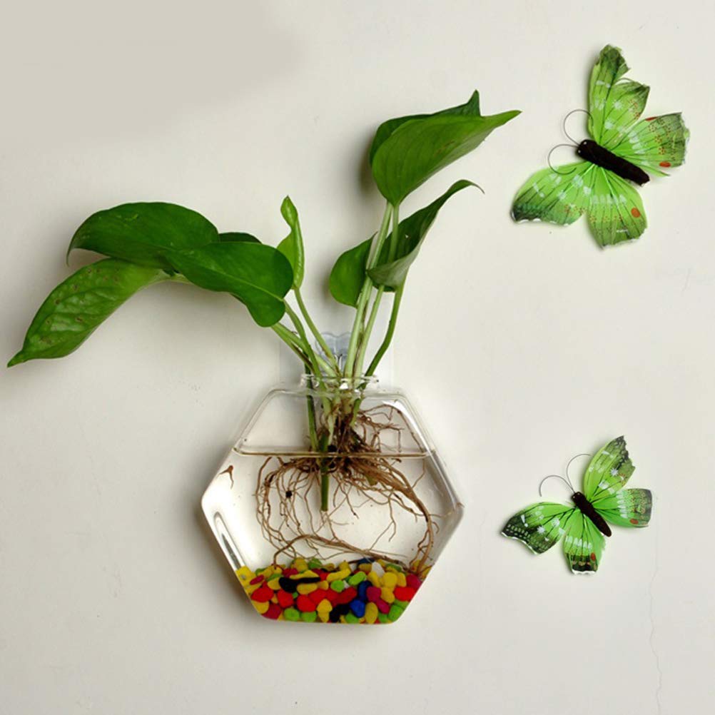 Amazon Com Doitool 1pc 17cm Hexagon Wall Mounted Hydroponics Vase Glass Hanging Planter Flowers Container With Non Trace Nail Crystal Mud Plant Vase Home Kitchen